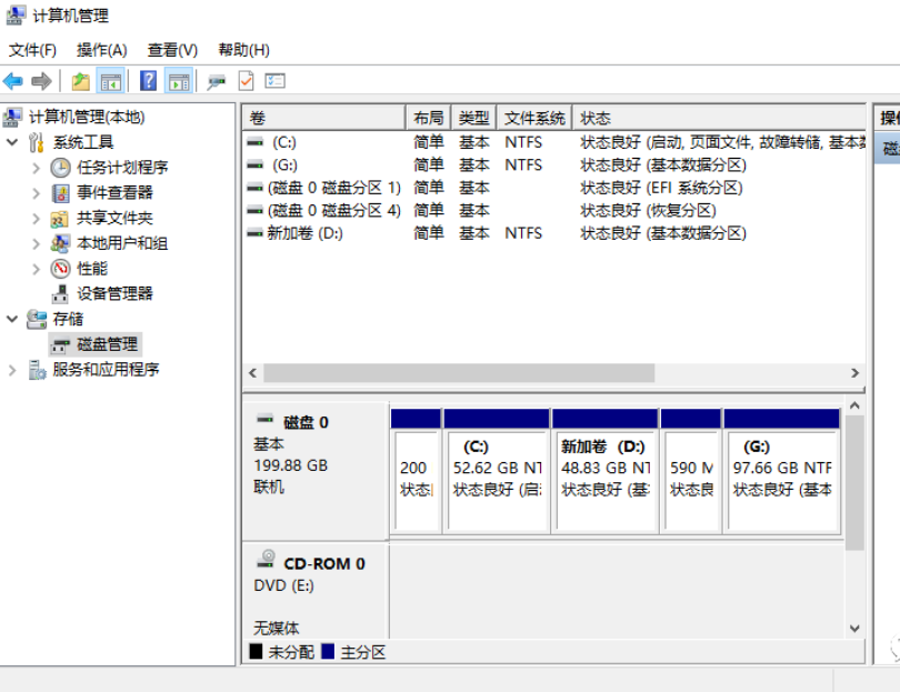 提示:若需再分區E盤,可以在D盤基礎上進行壓縮卷,或是在未分配磁盤上建立新的分區。
